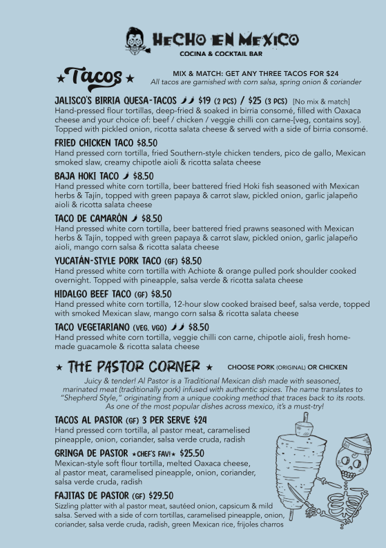 Welcome to Hecho en Mexico Newtown, a vibrant culinary destination located at 480 King St, Newtown, NSW. This gem boasts a lively atmosphere where every dish bursts with authenticity and flavor. Guests rave about the bottomless brunch experience, particularly the birria tacos and Baja fish tacos, expertly crafted to satisfy any palate. The standout feature here isn’t just the food, but the exceptional service provided by friendly staff like Carlo, Alexa, and Mahim, who create a warm and welcoming environment for every visitor.